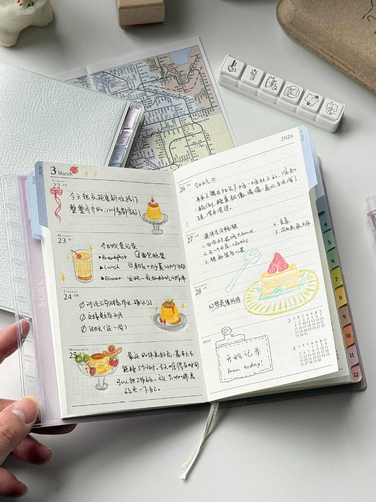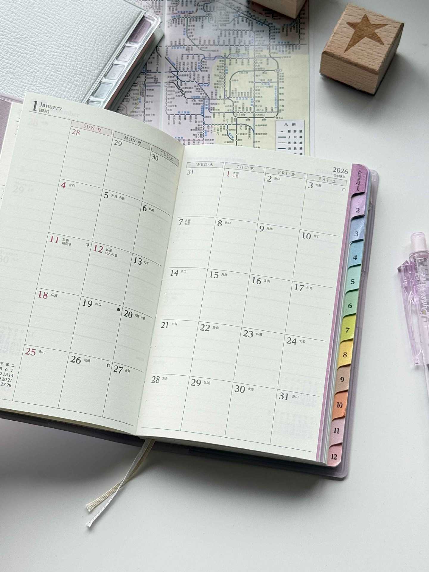 This compact planner is crafted from soft faux leather, with a rainbow index that adds a quiet, pastel touch to your daily routine.